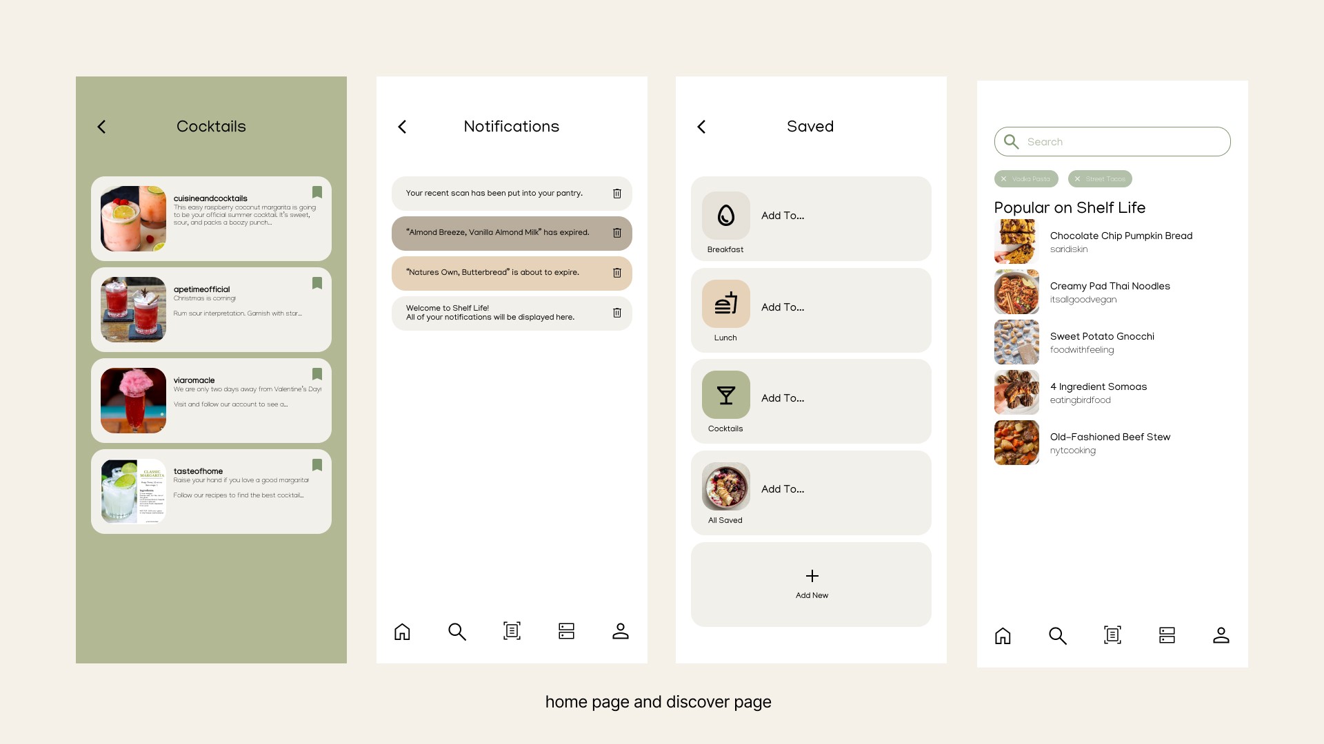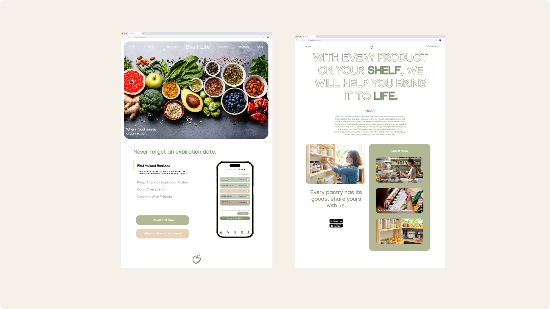 Shelf Life is a thoughtfully designed mobile application that helps users track their pantry inventory, monitor expiration dates, and create meals using ingredients they already own. The project was created to address a common yet often overlooked problem: food waste caused by disorganization, overbuying, and lack of meal inspiration. The app allows users to log grocery items, view upcoming expiration dates, and receive visual cues to use ingredients before they go bad. By turning the pantry into a digital, real-time inventory, Shelf Life removes the guesswork from grocery shopping and meal prepping and saves users time, money, and food. Beyond organization, Shelf Life emphasizes creativity and community in the kitchen. The built-in recipe feature suggests meals based on available ingredients and allows users to share and discover recipes from others. This encourages more intentional cooking, reduces reliance on unnecessary grocery trips, and helps users feel confident creating meals with what they already have. The grocery list further streamlines the experience by tracking items as they run low, making shopping faster and more efficient. With a clean, intuitive interface and user-centered functionality, Shelf Life is designed for students, families, and busy individuals who want a smarter, more sustainable approach to everyday cooking. This project showcases skills in UX/UI design, problem-solving, interaction design, and brand storytelling, while highlighting a commitment to sustainability and practical digital solutions. Shelf Life transforms everyday kitchen habits into a seamless, organized, and empowering experience.
